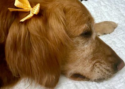 She had a big burst of confidence after her grooming at PPVS with Jackie King. She watched Millie the entire time. Jackie put calming music on and infused the room with some lavender, she is the best! When I brought her home, she was very relaxed in the backyard. It was a nice day so we stayed outside wile I worked in the garden and she would watch my every move. I saw her being we are more curious and looking around. If she was laying down, and if I were to walk by her, she took off and moved to another part of the yard. She loves when it’s time to eat and she loves her treats. She takes them from my hand. I still try to avoid direct eye contact so she’s more comfortable and trusting of me.